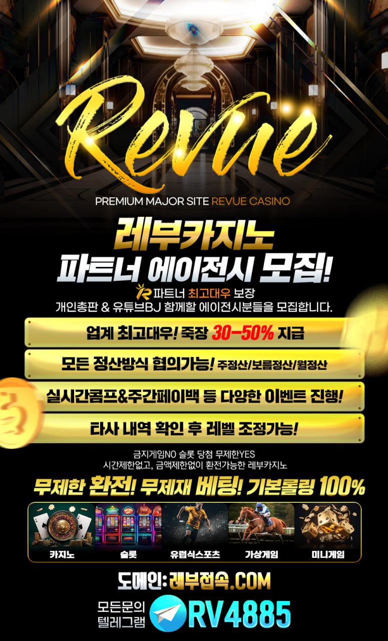 REVUE 카지노에서 총판,TM팀,유튜브팀 함께 하실 파트너 모십니다.